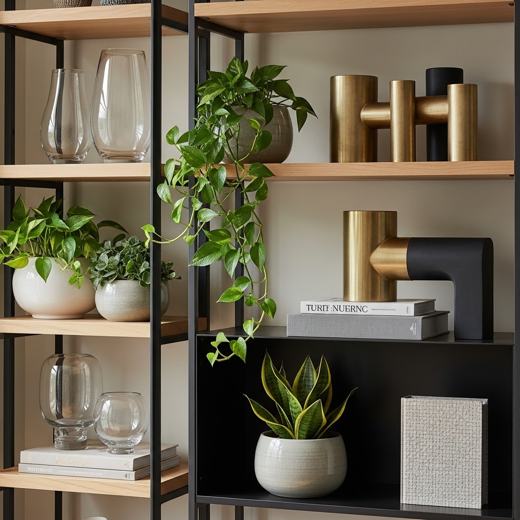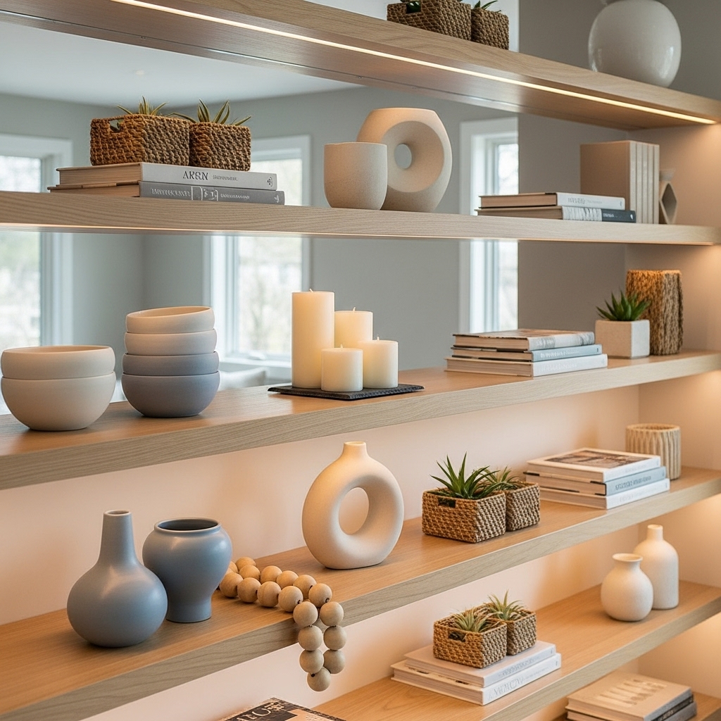 These accent pieces help your shelves look intentionally styled without overwhelming the space.