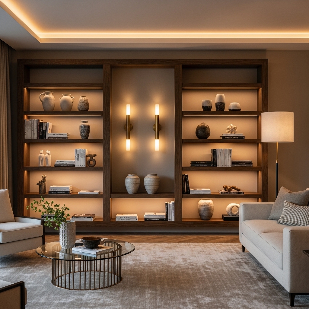 LED strip lights, small lamps, or spotlights instantly elevate built-ins and add warmth.