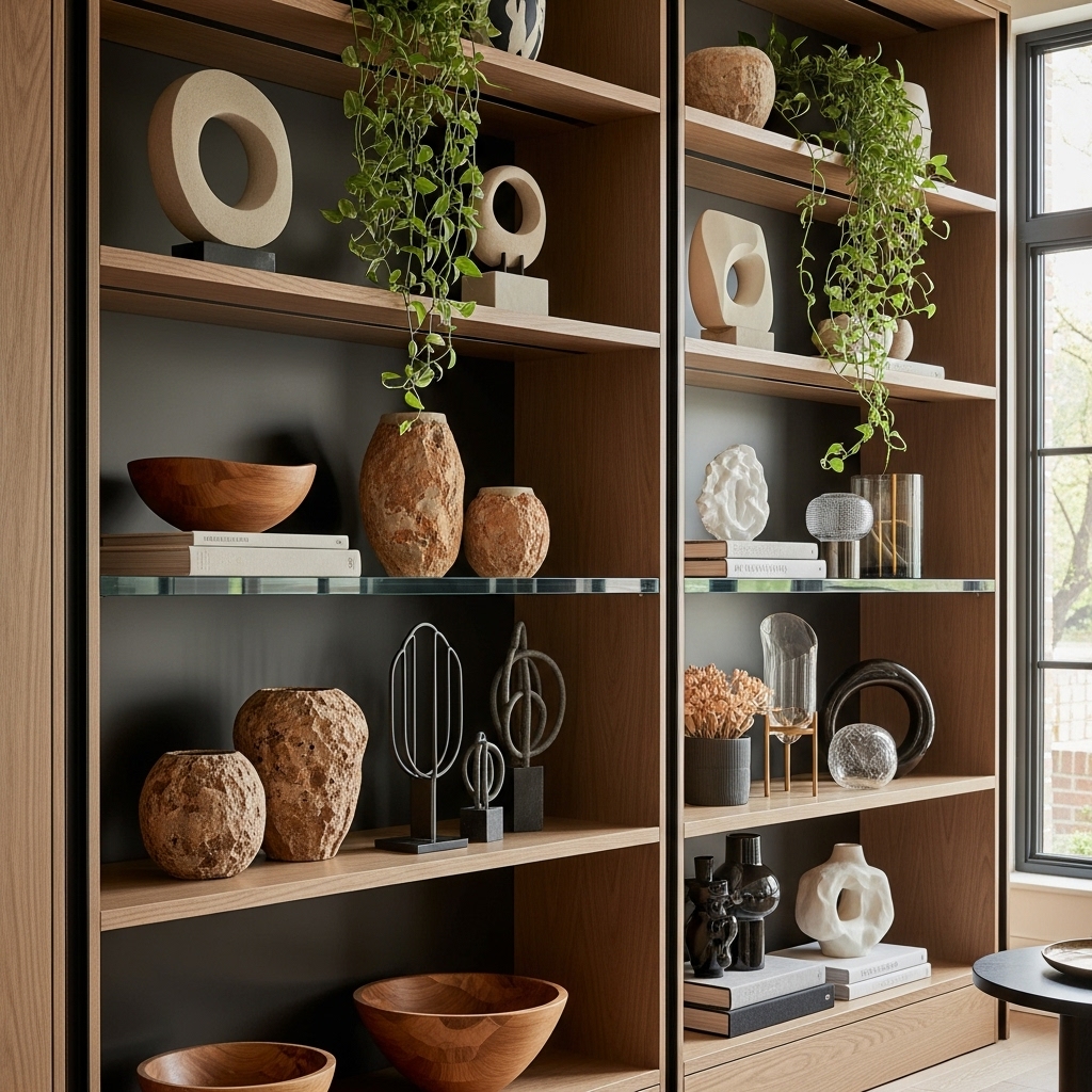 These pieces anchor your design emotionally while giving your shelves a unique personality.