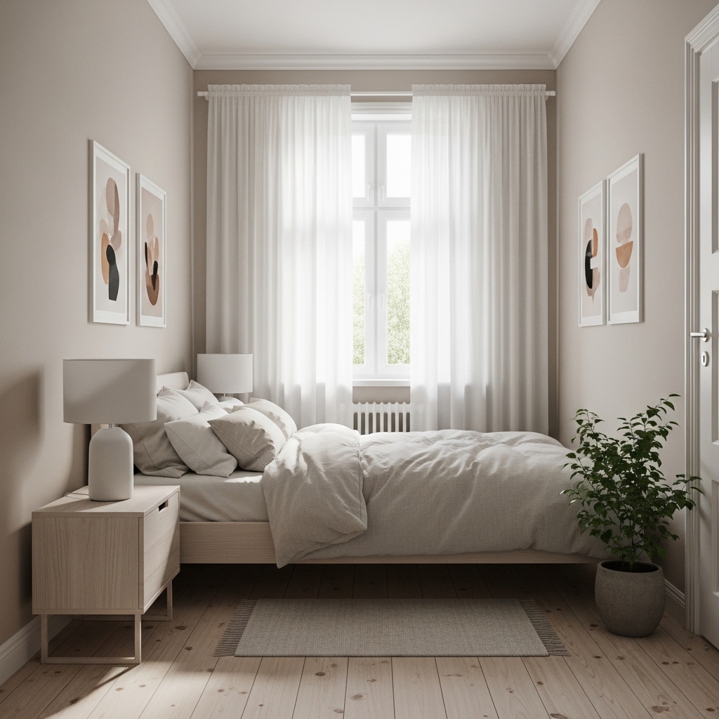Even in a compact bedroom, you can express your personality through art, bedding, and accessories. Choose wall art that complements your color palette and keep frames cohesive for a streamlined look.