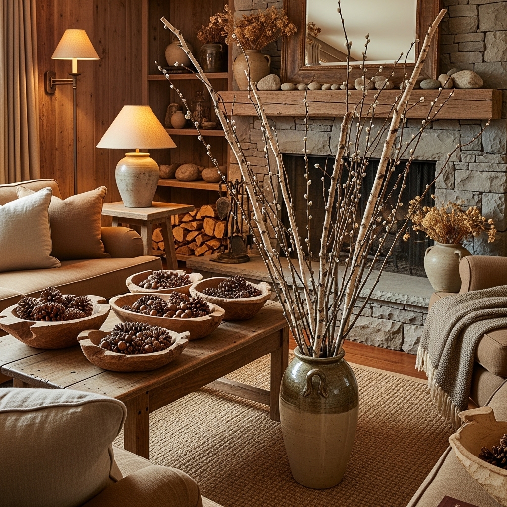 Bringing in organic decor is an easy way to enhance the cabin atmosphere. Add simple, nature-inspired elements such as: