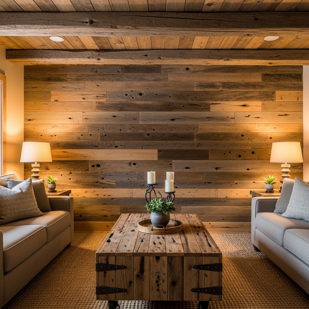 Each piece of reclaimed wood has its own character—knots, grain patterns, natural imperfections—which add authenticity and charm. It’s a material that instantly makes your living room feel organic and grounded.