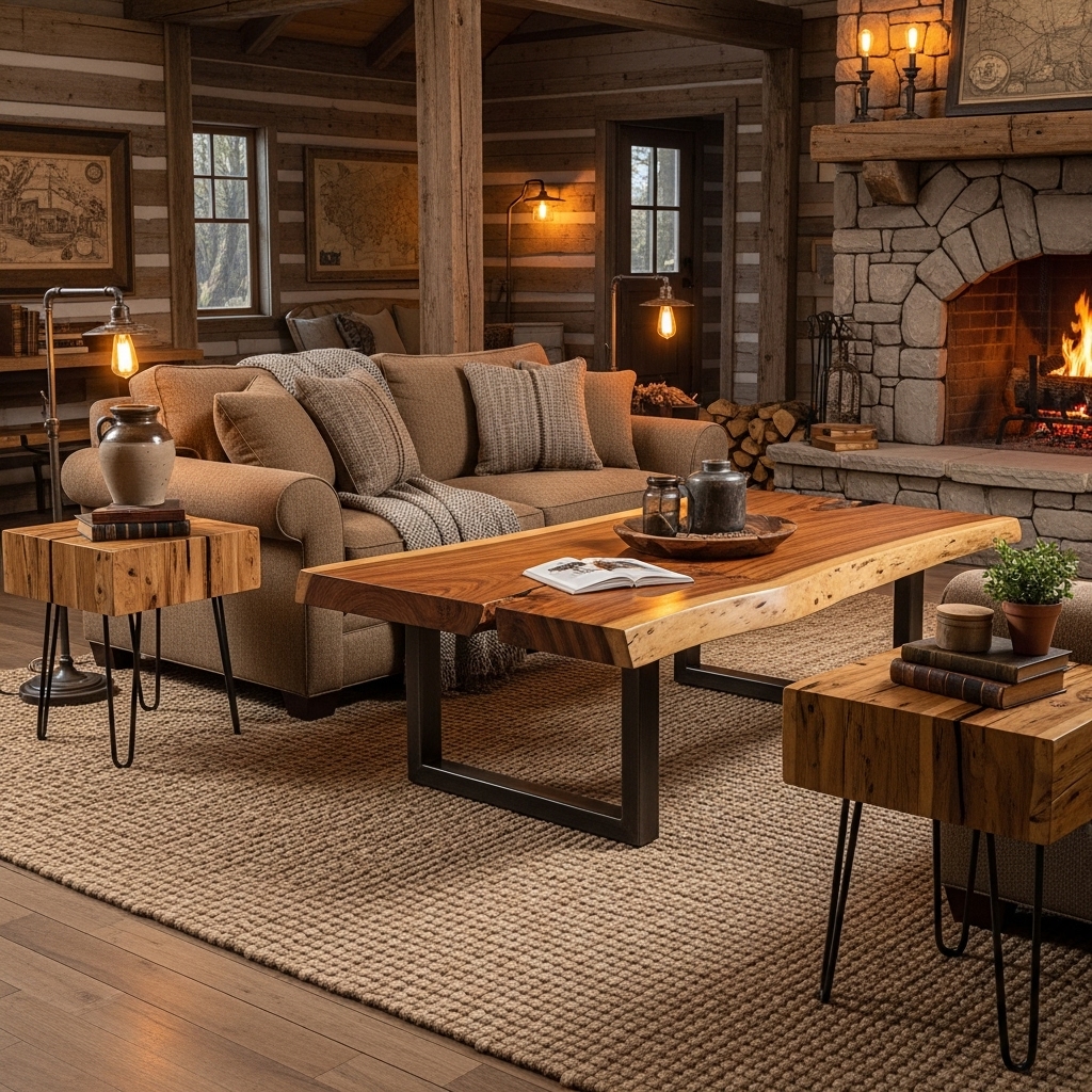 Rustic coffee tables often feature reclaimed wood, tree-slice slabs, or wrought-iron legs.
