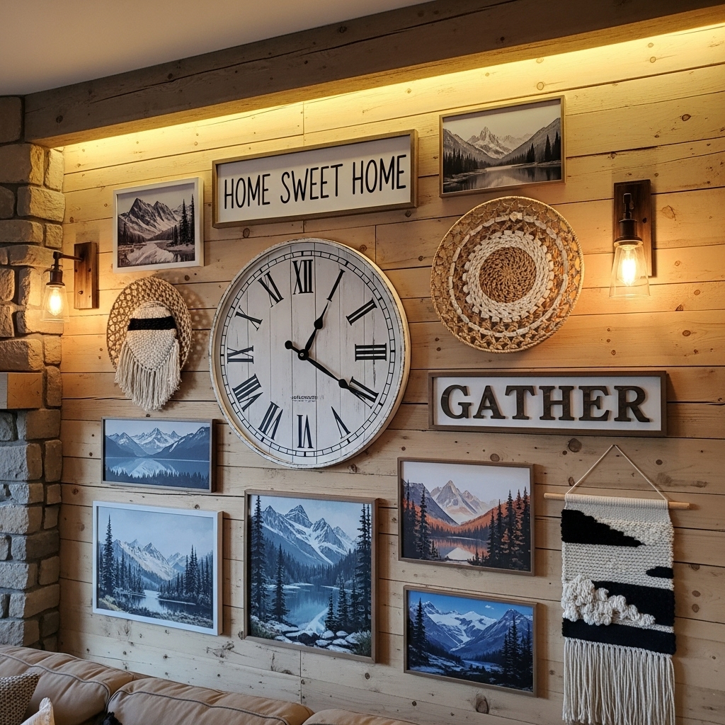 Rustic wall decor adds personality and visual interest. Some great options include: