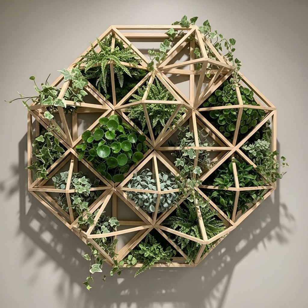 6. Eco-Chic Wall Art with Wooden Geometry Stunning Wooden Plant Wall Ideas