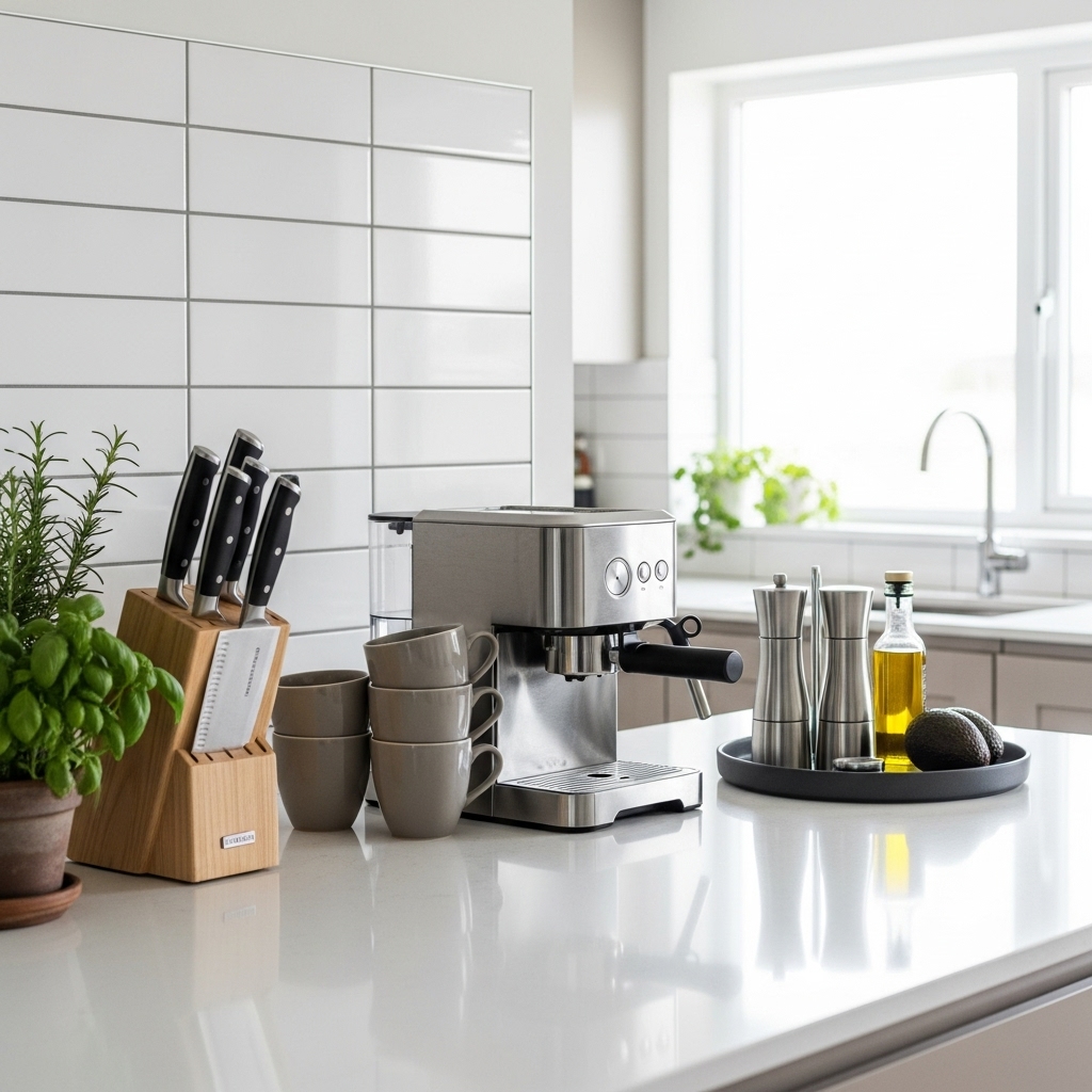Above all, your countertop should work for your lifestyle. Avoid clutter by only leaving out items you use regularly. Pair functionality with style, and your counters will feel curated instead of chaotic.