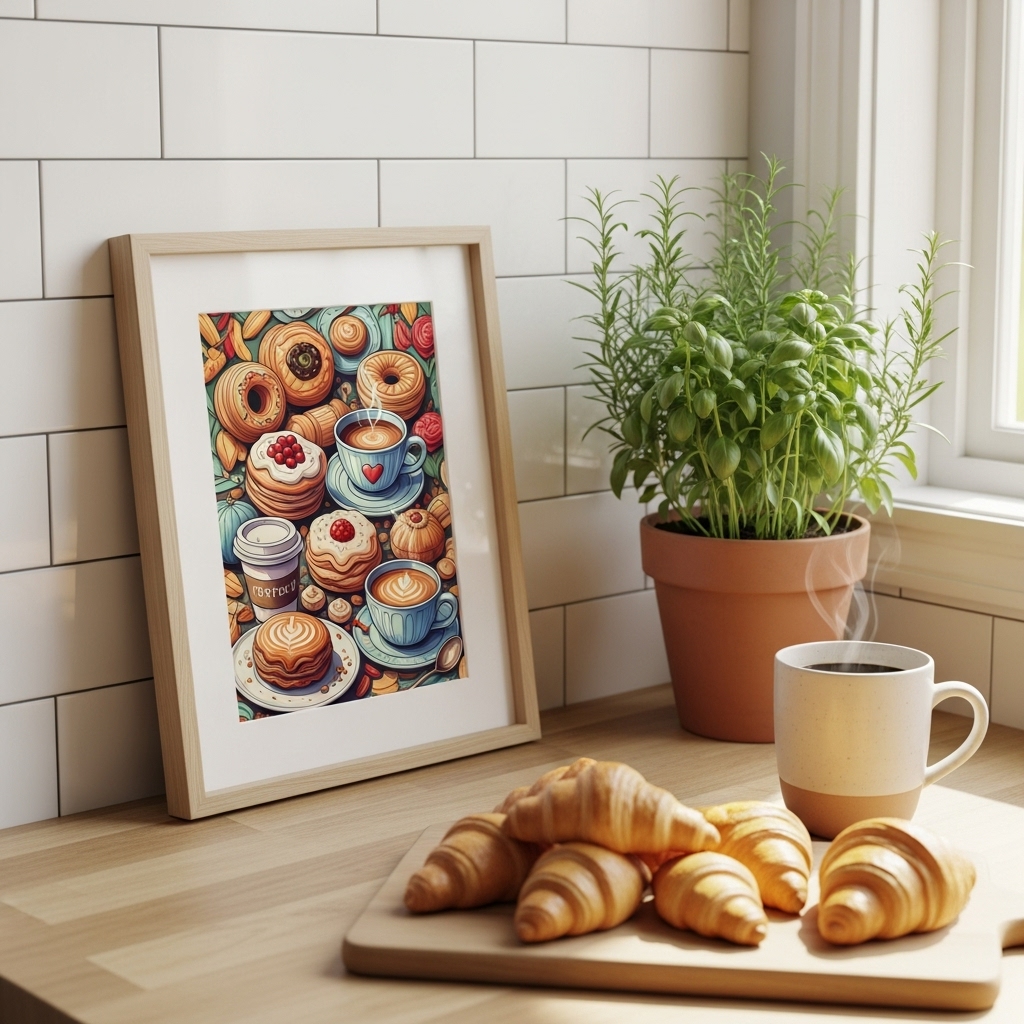 Small framed artwork can be leaned against your backsplash for a creative touch. Choose something food-themed, abstract, or even a chalkboard for recipes and notes.