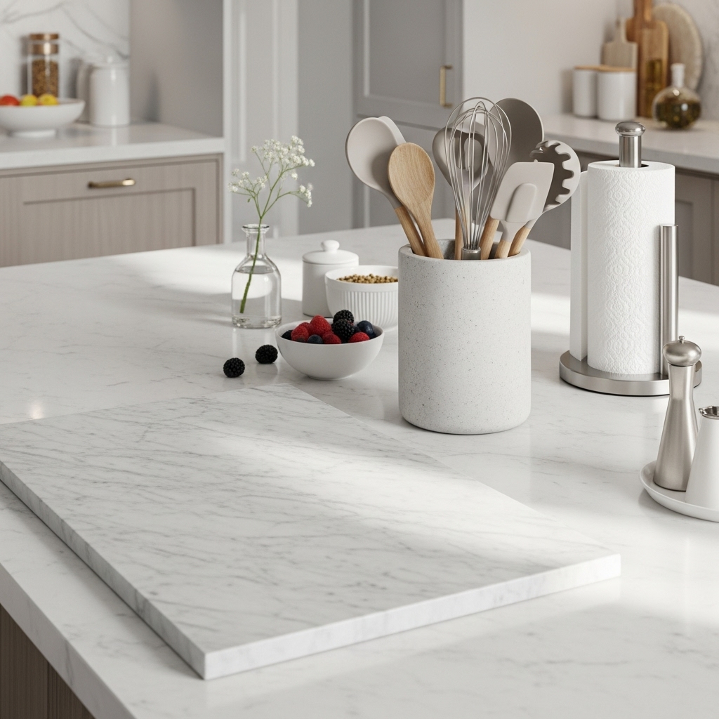 Marble pastry slabs, coasters, or utensil holders can bring elegance to your kitchen. These subtle touches tie in beautifully with stone countertops.
