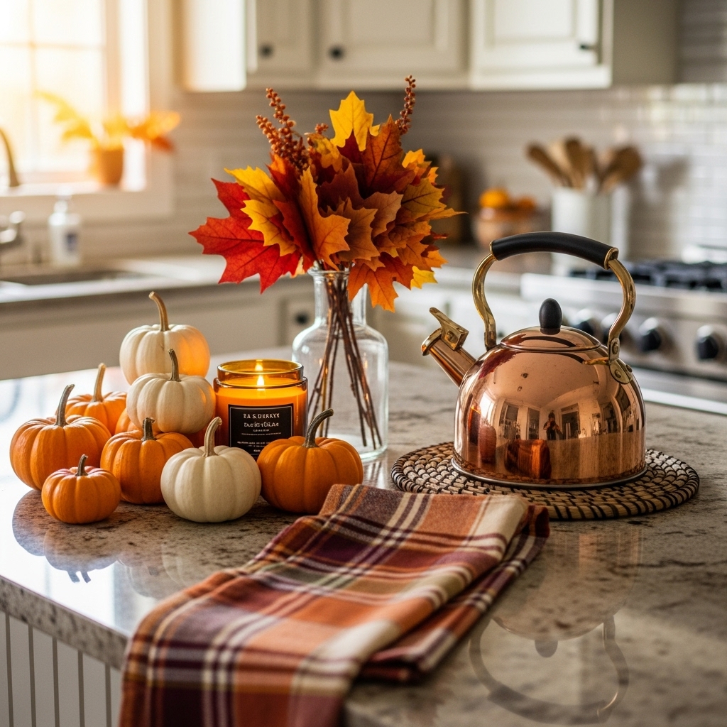 Switching out small decorative accents by season keeps your kitchen feeling fresh. In fall, think mini pumpkins or a copper kettle; in winter, pine branches or festive mugs; in summer, fresh citrus in a bowl adds vibrance.