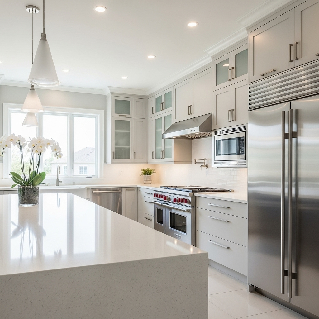 Durable, low-maintenance, and visually stunning, quartz countertops are among the most popular choices in modern remodels. Unlike granite, quartz is non-porous, making it resistant to stains and bacteria.