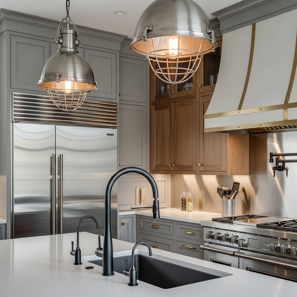 Instead of sticking to one metal, try mixing finishes like matte black faucets with brass cabinet pulls. The result is a modern, curated look that feels fresh and intentional.