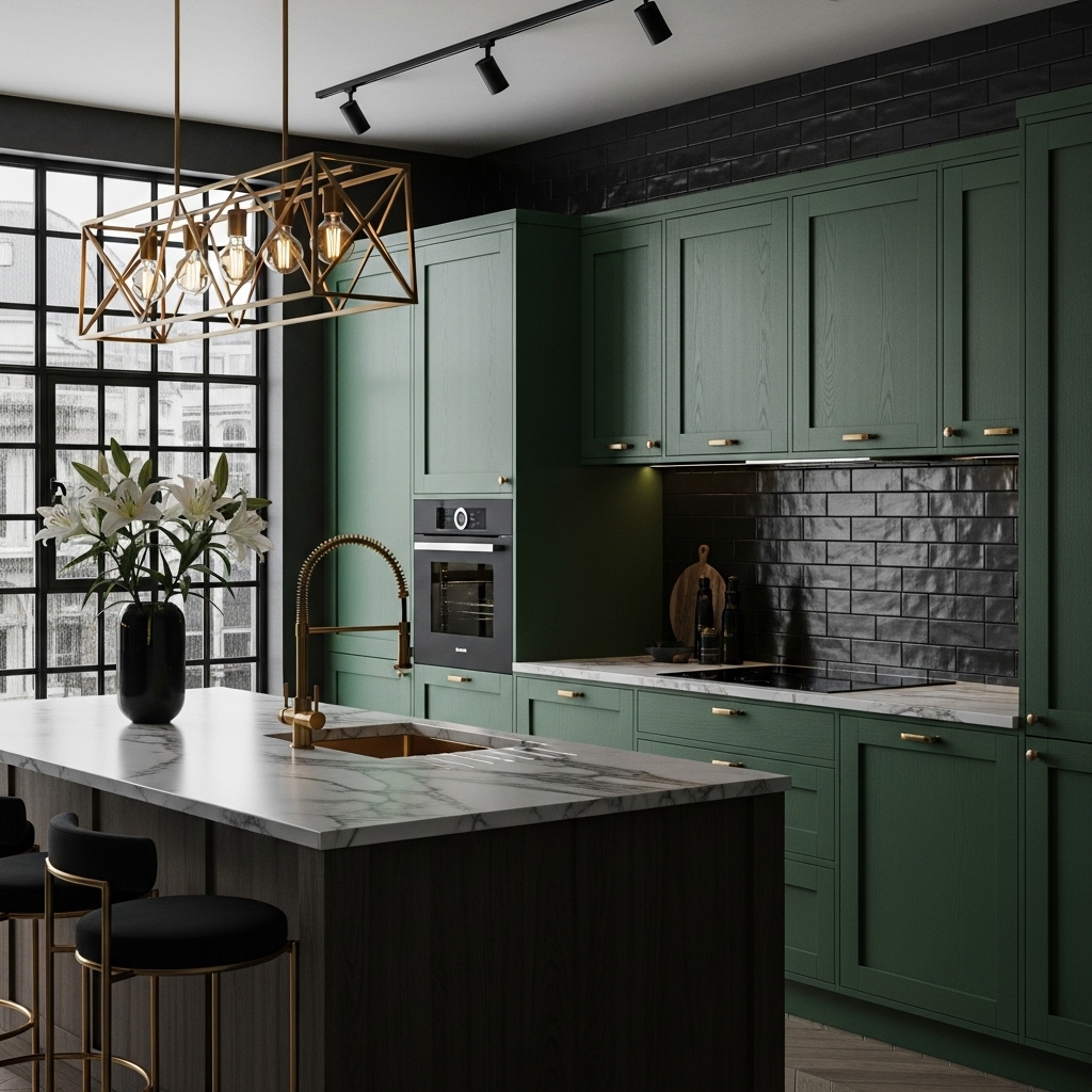 Gone are the days when kitchens had to be all white. Rich greens, matte blacks, and even deep reds are trending. Don’t be afraid to embrace a bold palette that reflects your personality.
