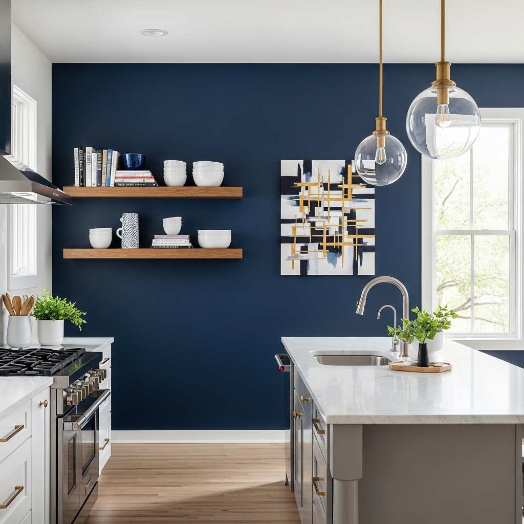 Accent walls aren’t just for living rooms. Paint one kitchen wall in a bold color, use reclaimed wood, or add patterned wallpaper to create a focal point.