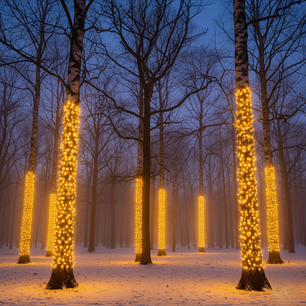 Use warm white lights for a softer glow or cool white for a crisp, snowy look.