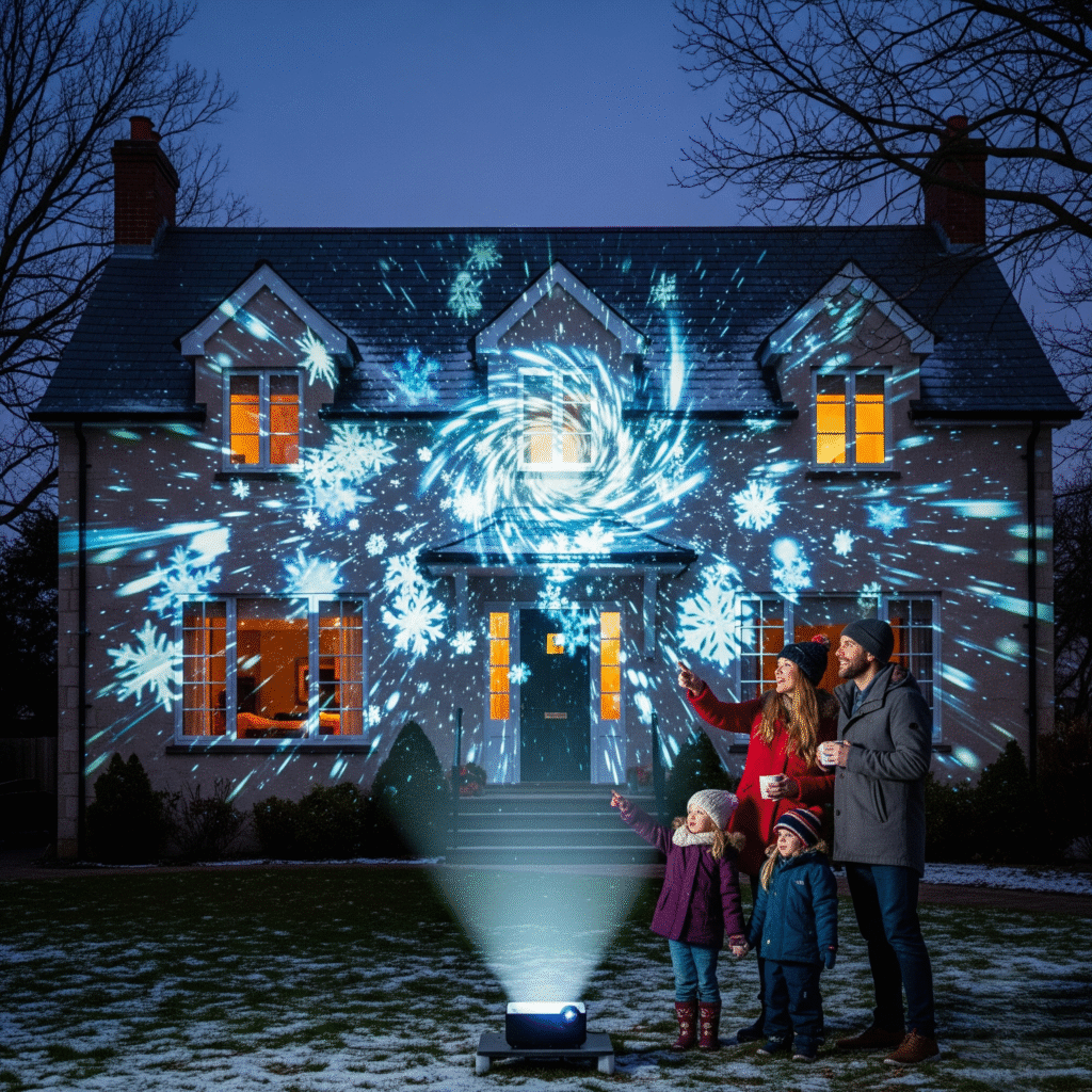 Don’t want to climb a ladder? A Christmas projector is your best friend.