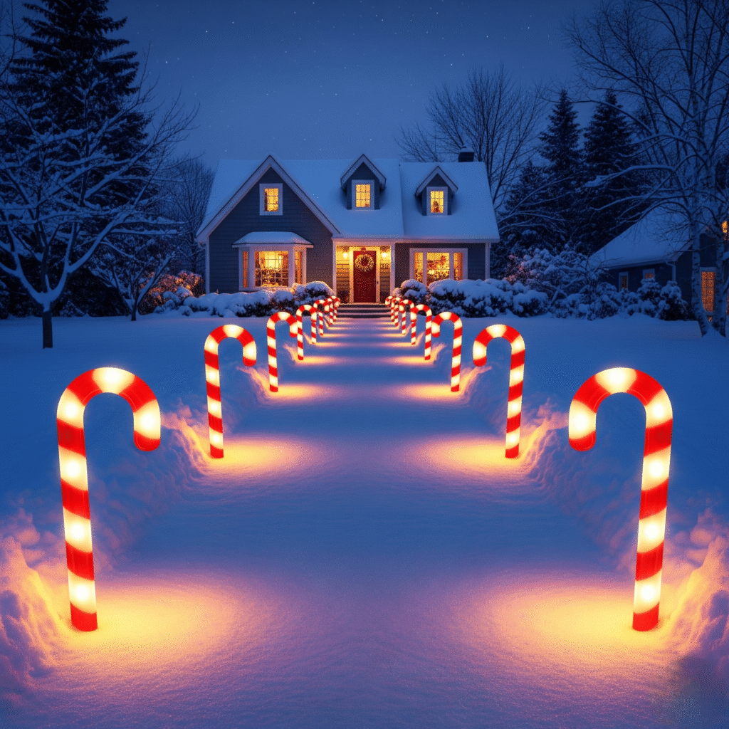 Your walkway deserves love too. Stick candy cane lights along the path to guide Santa straight to your door.