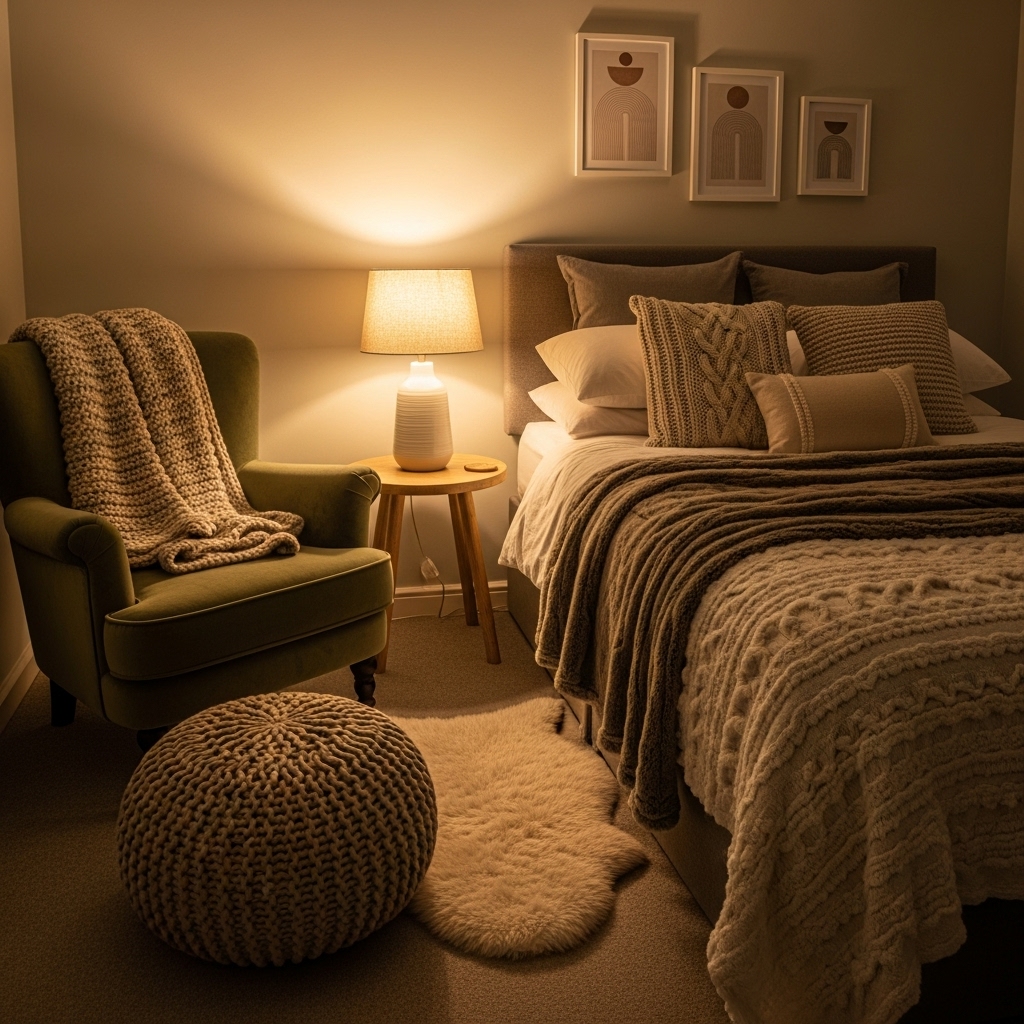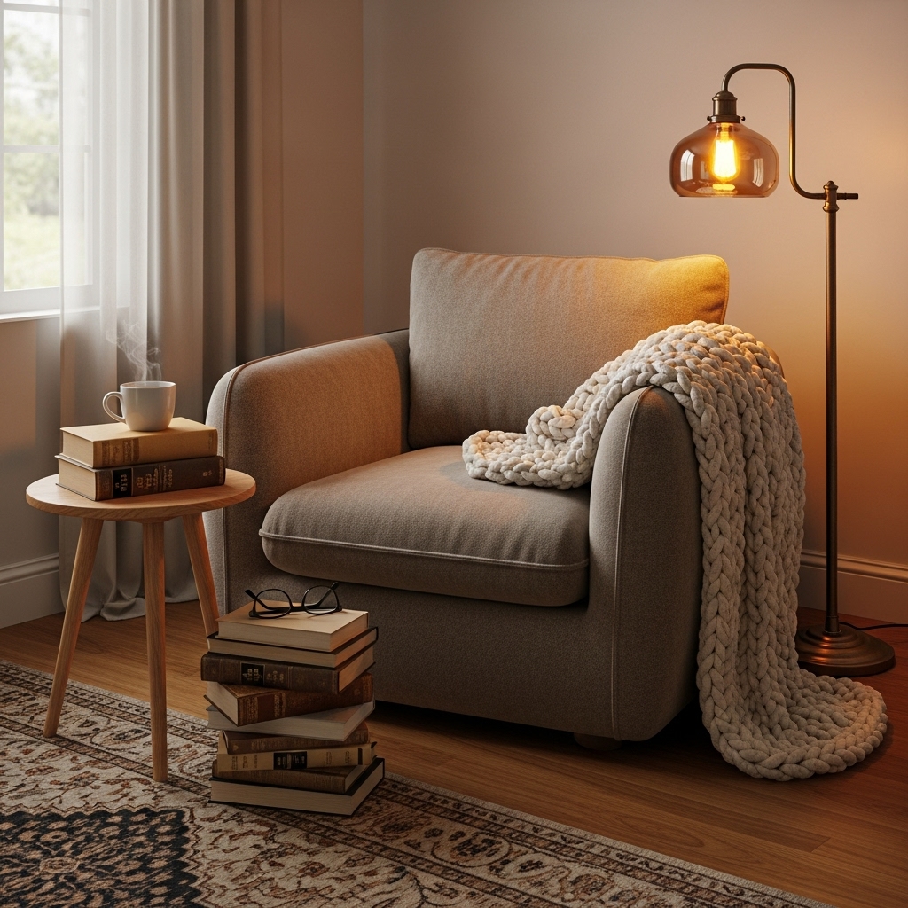 A cozy chair, floor cushion, or small loveseat paired with soft lighting becomes the perfect quiet retreat for reading or unwinding before bed.