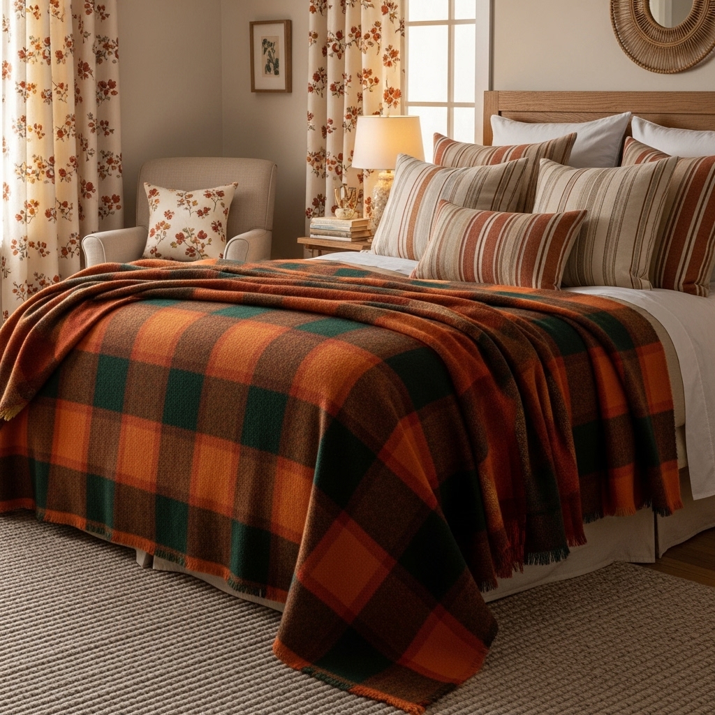 Patterns like plaids, florals, and gentle stripes bring character without overwhelming the space. Use them sparingly through pillows, throws, or curtains.