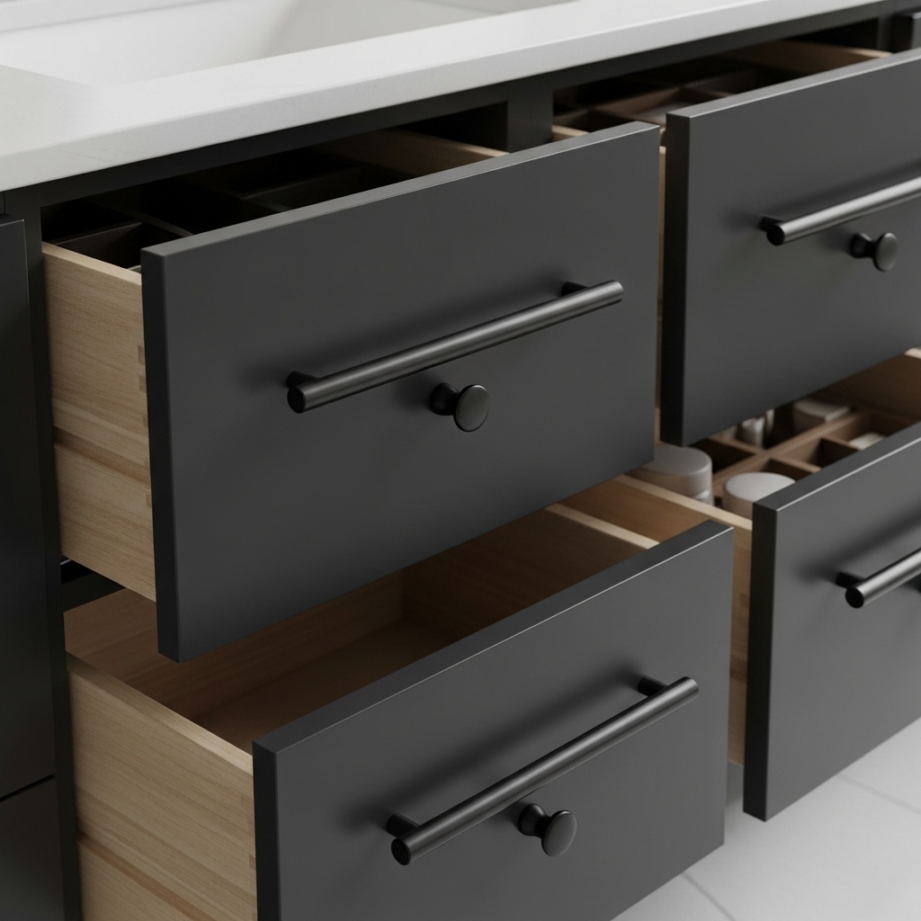 Cabinet knobs, drawer pulls, and even faucet handles can usually be swapped easily. Brass, matte black, or brushed nickel instantly modernize the space.
