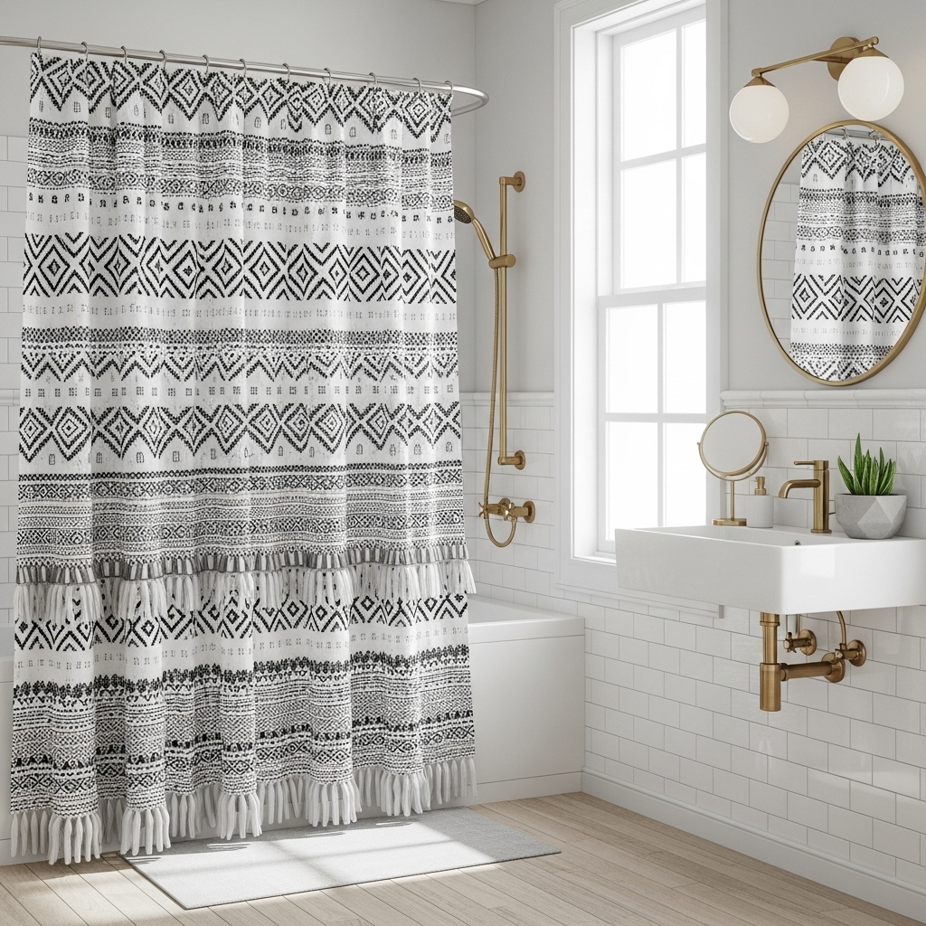 Never underestimate the power of a chic shower curtain. Go for bold prints, earthy neutrals, or even textured fabrics like waffle-knit. This one swap instantly elevates the whole bathroom.