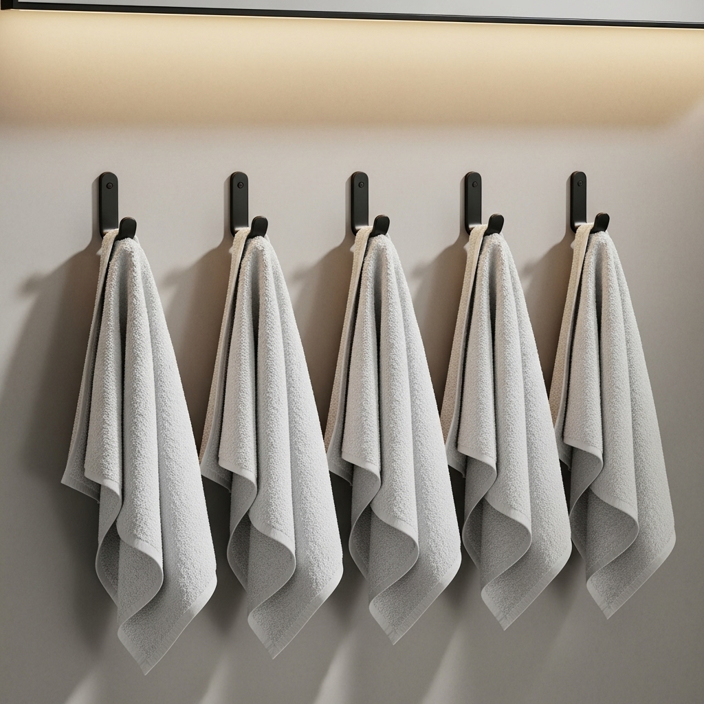 Hooks are more space-efficient than bulky towel bars. Plus, they’re easier for roommates or guests to use (no folding required).