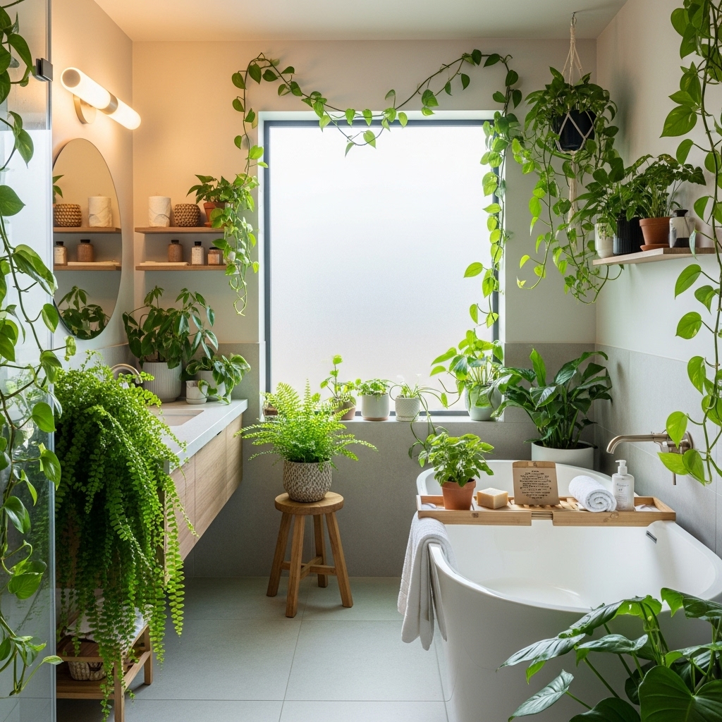 Bathrooms + plants = major win. 🌿 Go for humidity-loving options like pothos, ferns, or snake plants. Not only do they purify the air, but they also add life and color.
