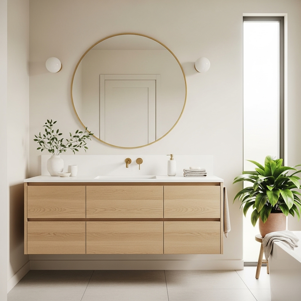 Swap out your standard mirror for a round or arched statement mirror. It doesn’t just look chic—it also makes the space feel bigger and brighter.