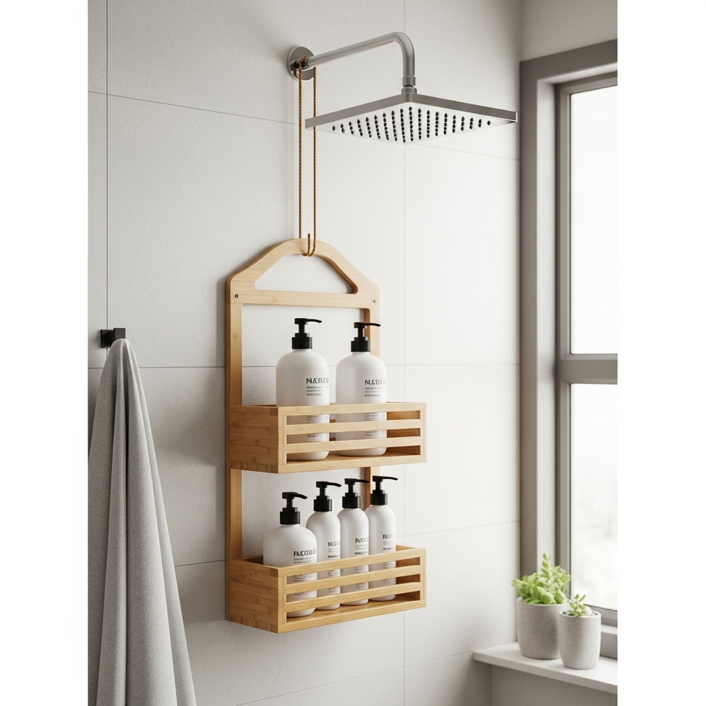 Say goodbye to rusty shower racks. Opt for a sleek stainless-steel or bamboo caddy to keep your products tidy.