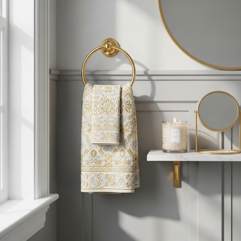 Fun patterns or embroidered hand towels add personality. Hang them on a hook or a stylish towel ring for maximum effect.