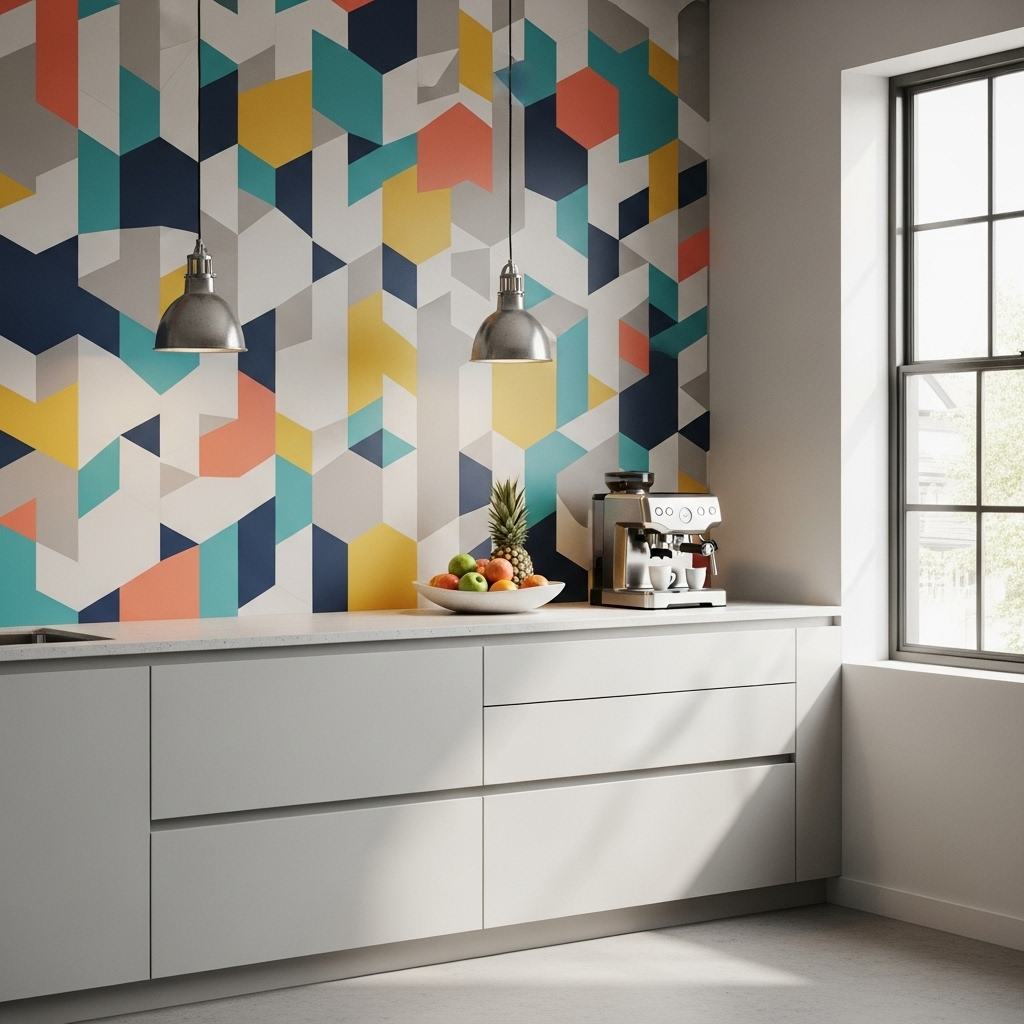 If you want your backsplash to be the star of your kitchen, geometric tiles are a fantastic option. Hexagons, triangles, and chevron patterns in contrasting colors can make a small kitchen feel lively and energetic.