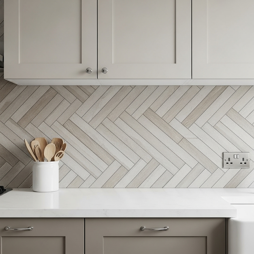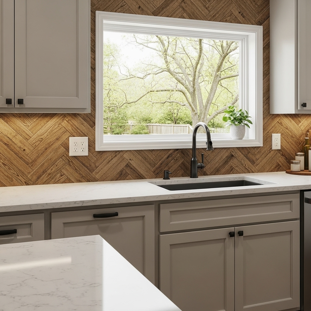 If you love the warmth of wood but want a durable backsplash, wood-look tiles are the perfect compromise. They give the cozy feel of wood without worrying about water damage or maintenance.