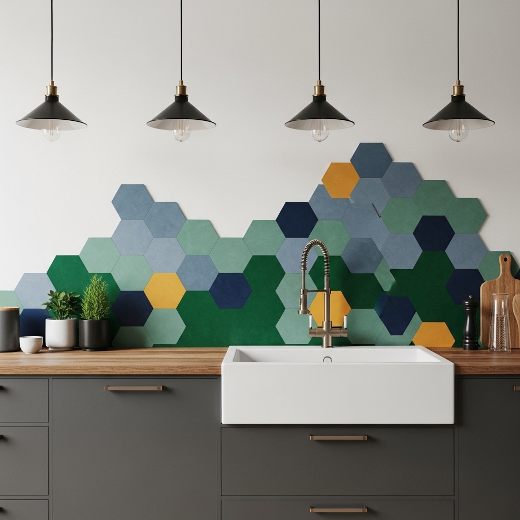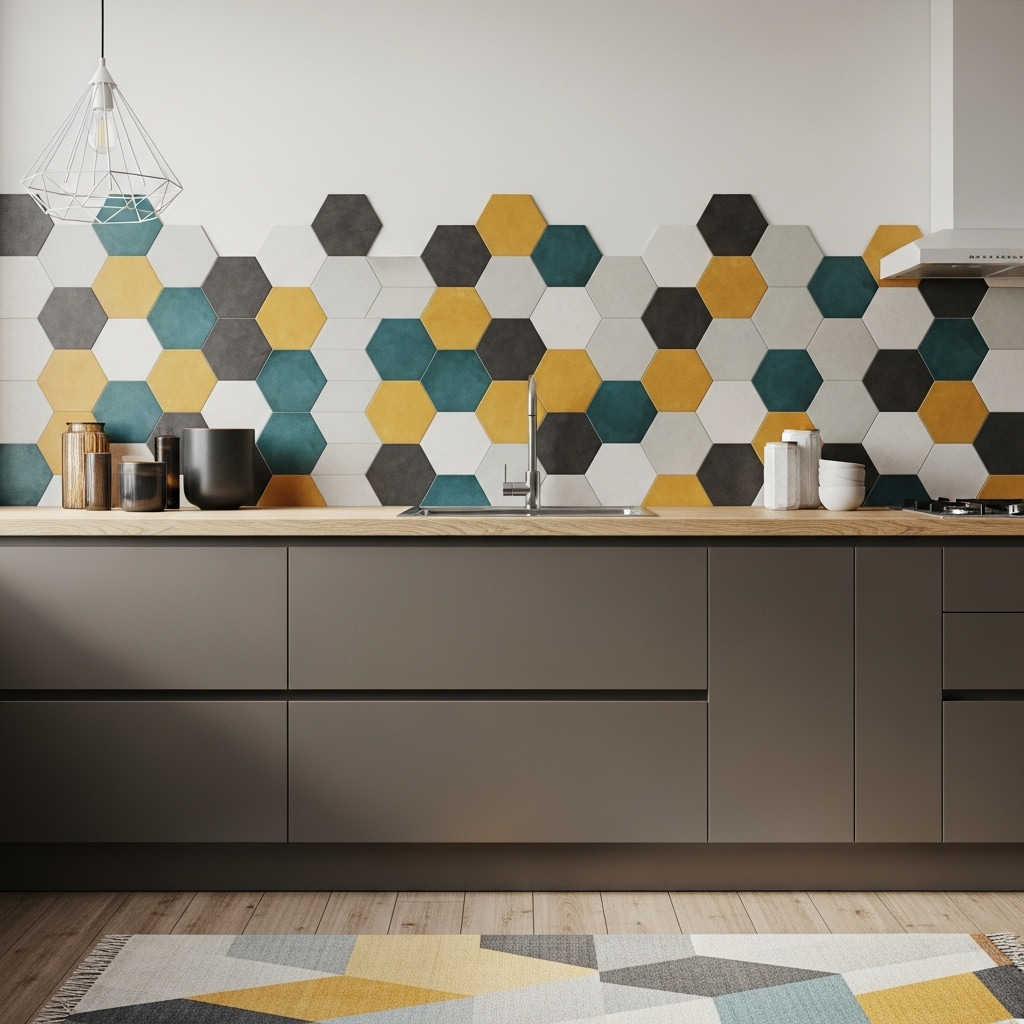 Hex tiles offer a geometric twist on traditional tile designs. They are available in multiple sizes and colors, making it easy to create a playful or sophisticated look depending on your kitchen style.