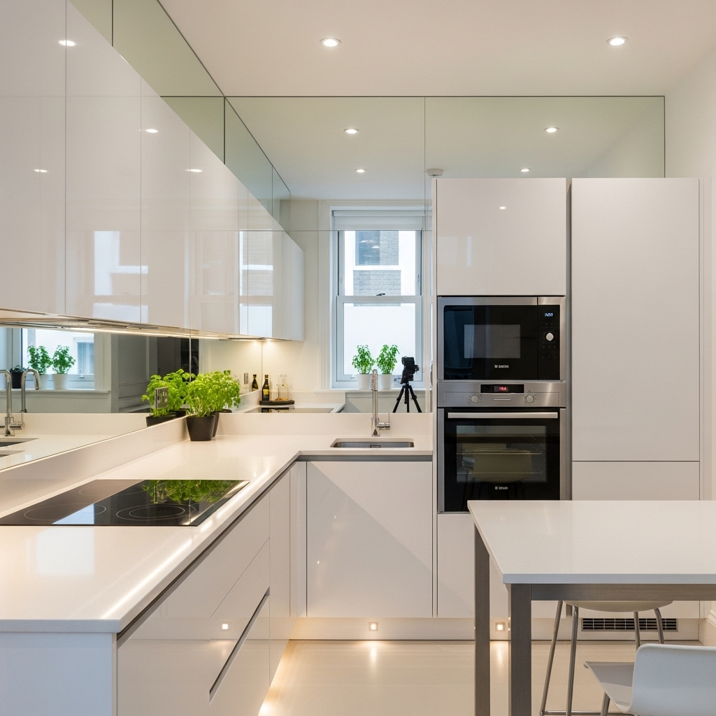 Mirrored backsplashes can make a small kitchen appear larger by reflecting light and creating a sense of openness. They are ideal for compact spaces or kitchens with limited natural light.