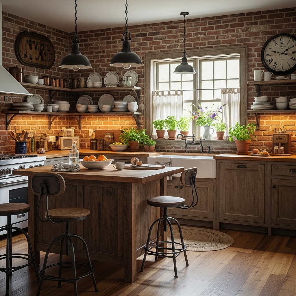 For a rustic or industrial vibe, exposed brick or brick-patterned tiles can give your kitchen a warm, cozy feel. This style works especially well in loft-style apartments or traditional kitchens.