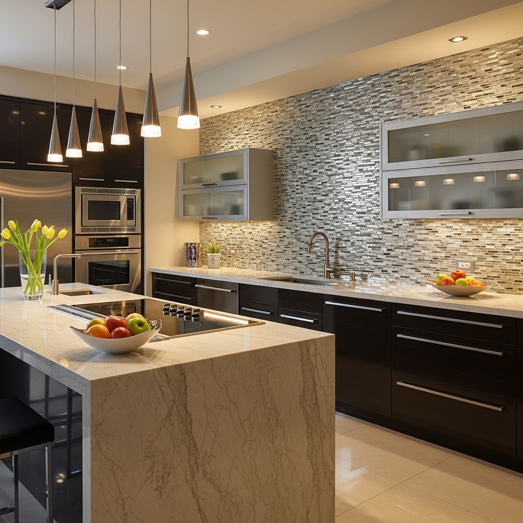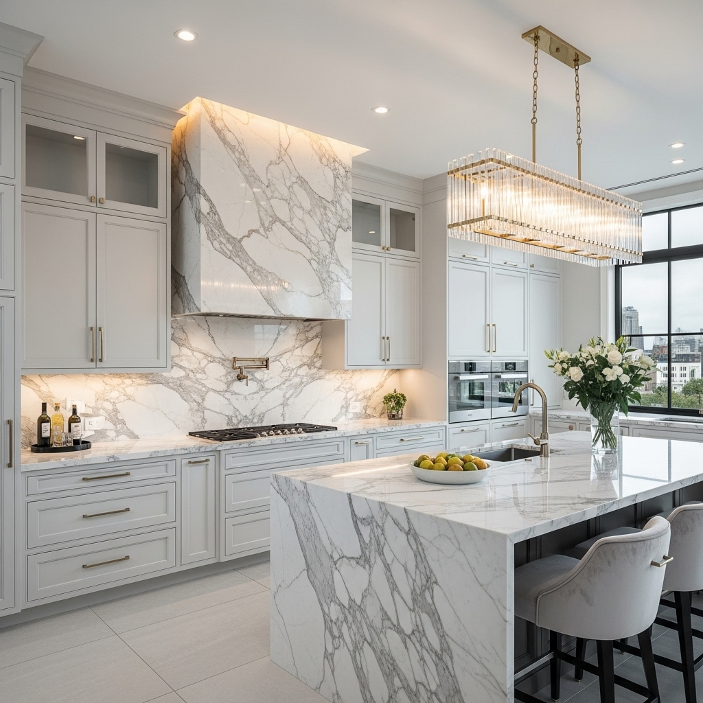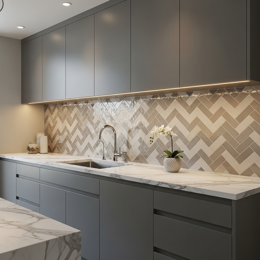 Marble is synonymous with luxury. A marble backsplash with natural veining can instantly elevate the sophistication of your kitchen. Pair it with minimalist cabinets for a high-end, contemporary feel.