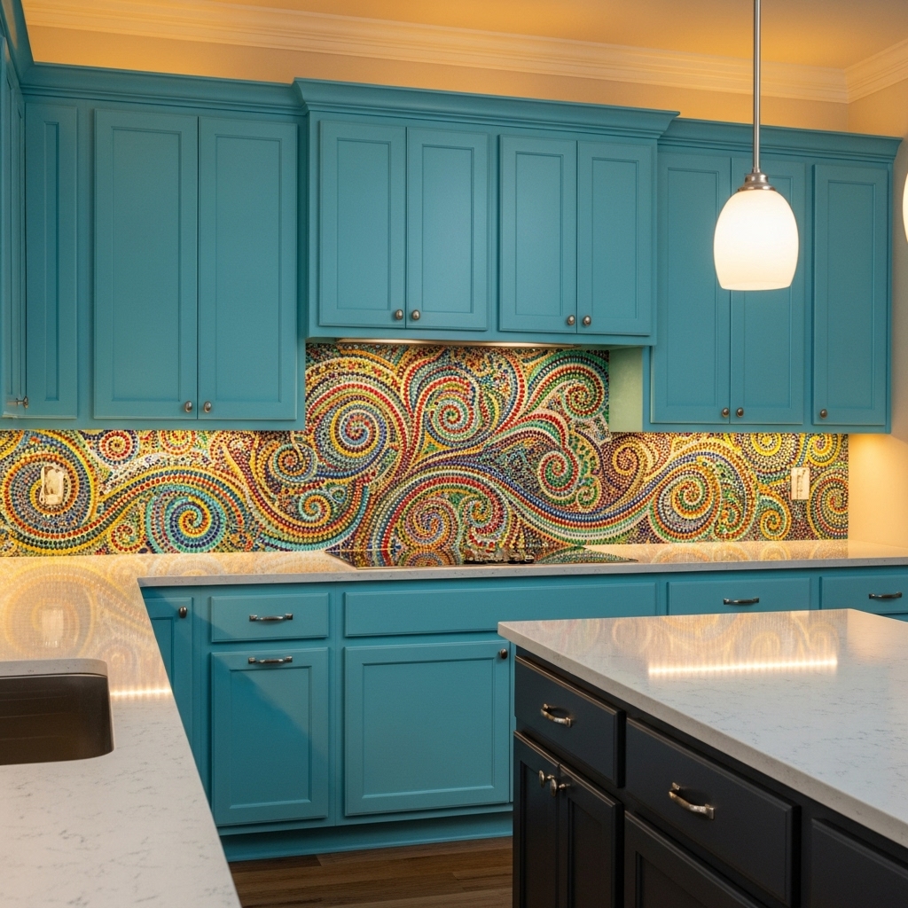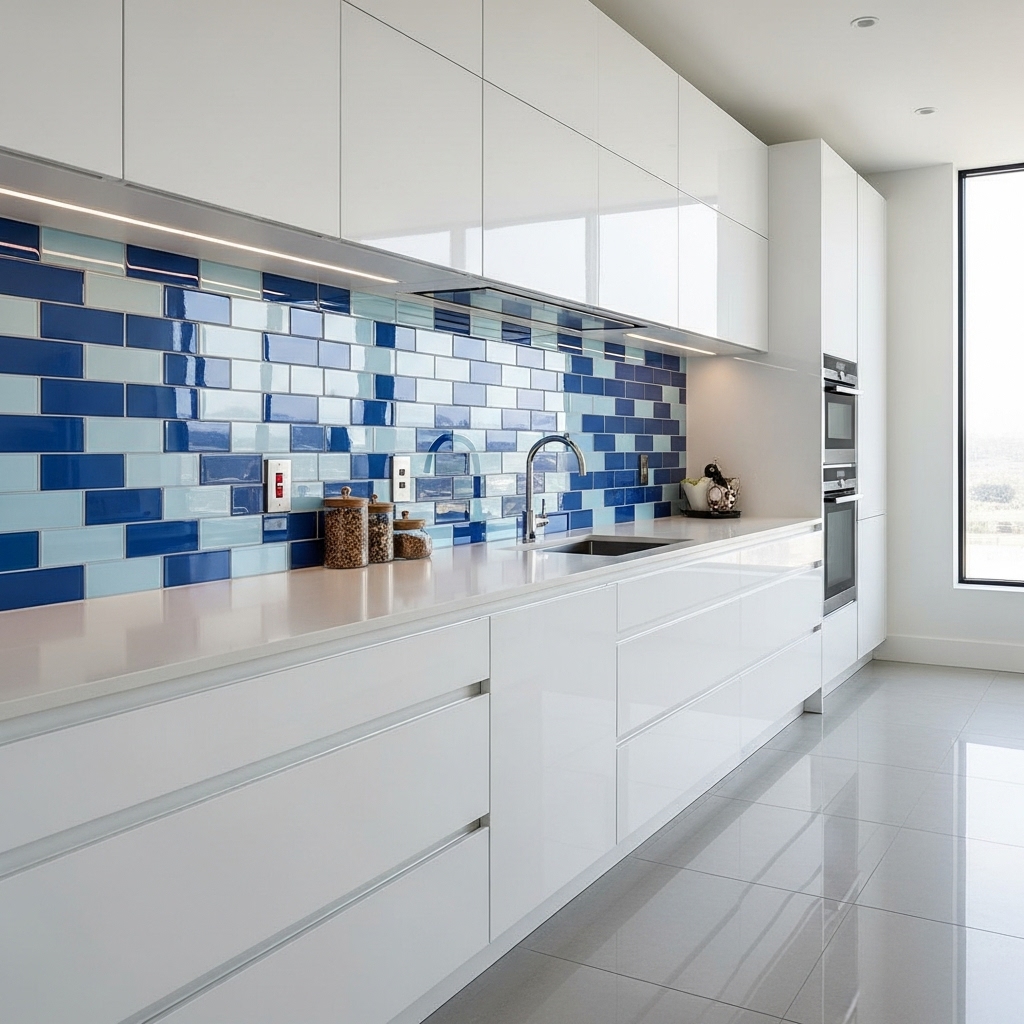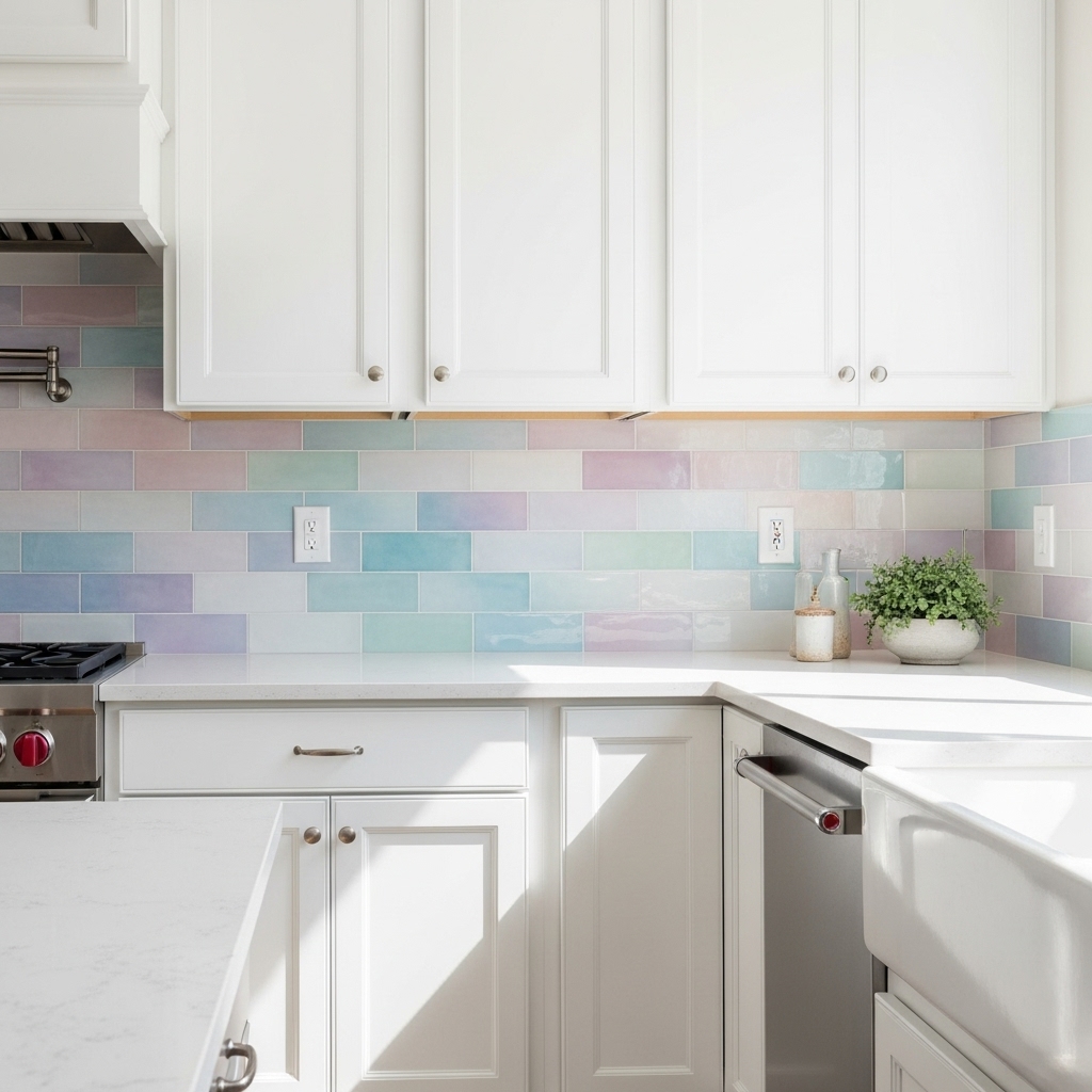 Watercolor-style tiles give a soft, dreamy aesthetic. Their gradient hues and fluid patterns can transform your backsplash into a piece of art.