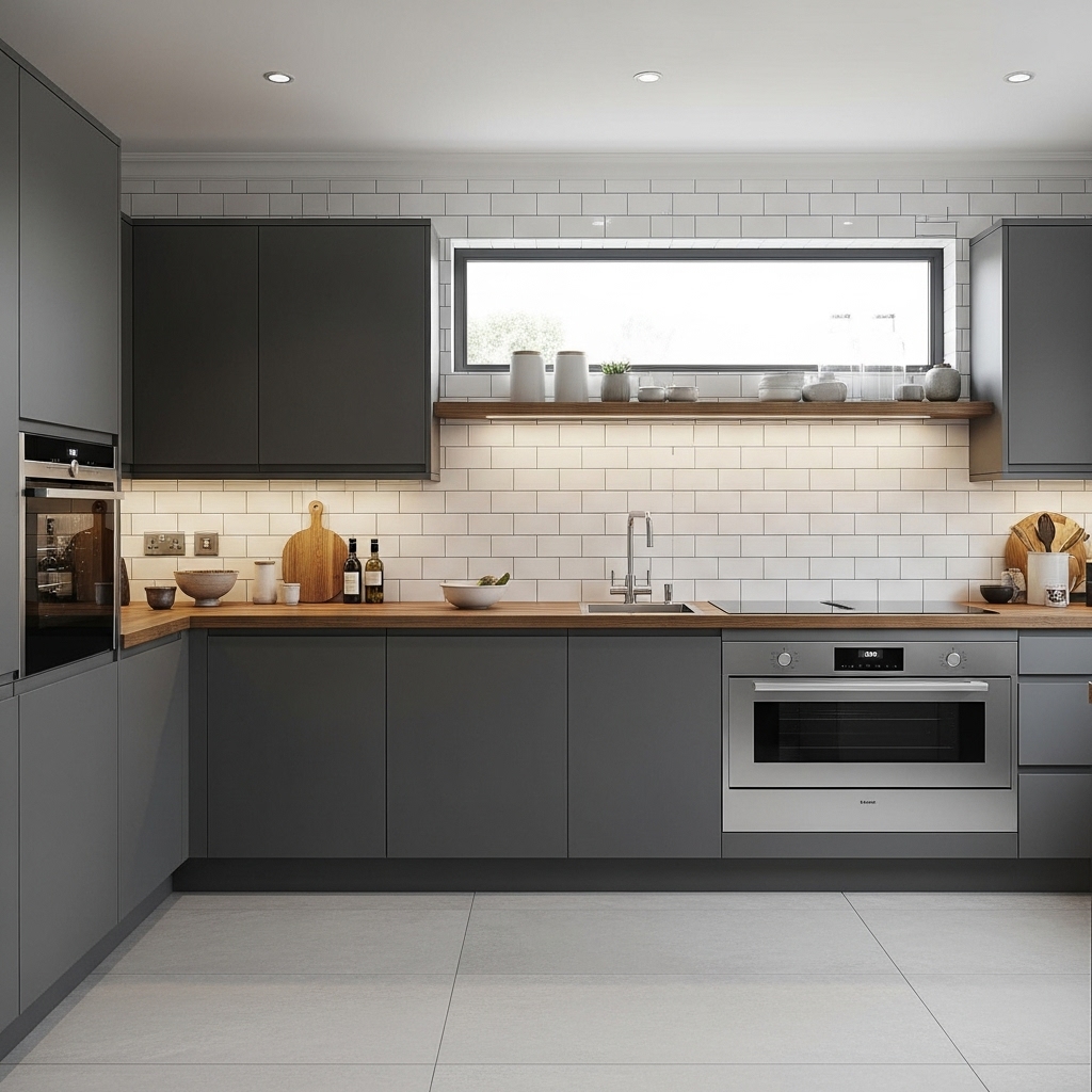Subway tiles are timeless and versatile. Whether you choose the traditional white tiles with gray grout or experiment with colored or patterned grout, this style adds a clean and polished look to any kitchen. They can complement both modern and traditional kitchen designs.