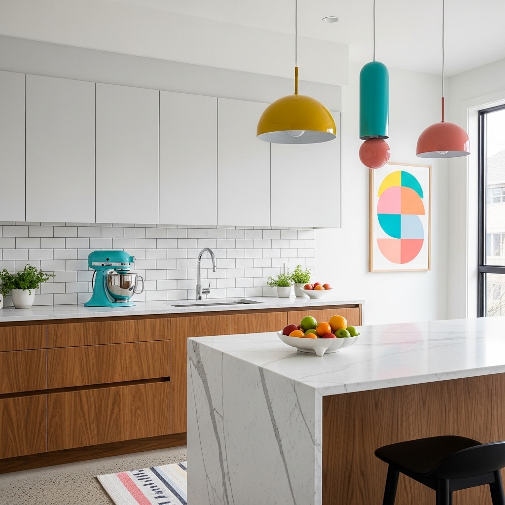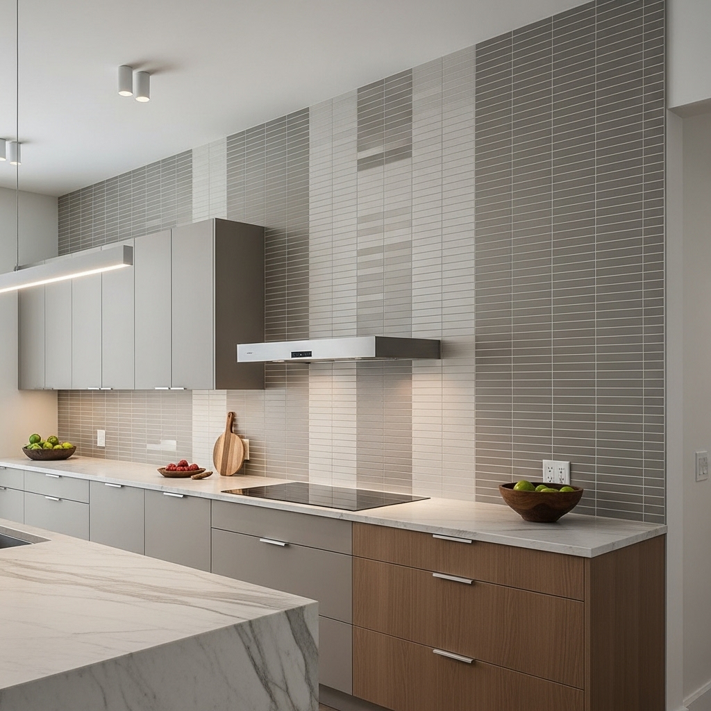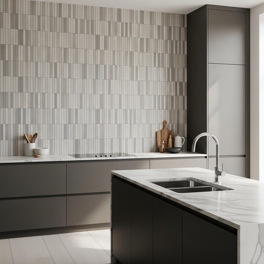 Instead of the traditional horizontal subway layout, try stacking tiles vertically. This subtle change in orientation elongates the walls and makes your kitchen feel taller and more spacious.