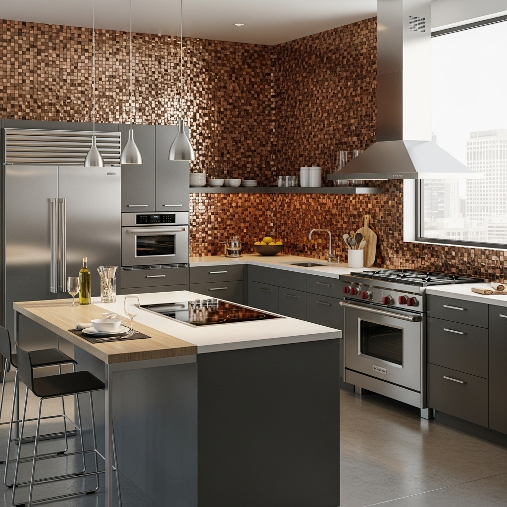 For those who love a modern, chic look, metallic backsplashes in copper, bronze, or stainless steel add shimmer and reflect light beautifully. These are especially effective in kitchens with industrial or contemporary designs.