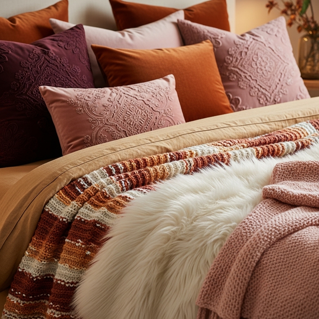 2. Layer Cozy Textures DIY Bedroom Makeover Ideas