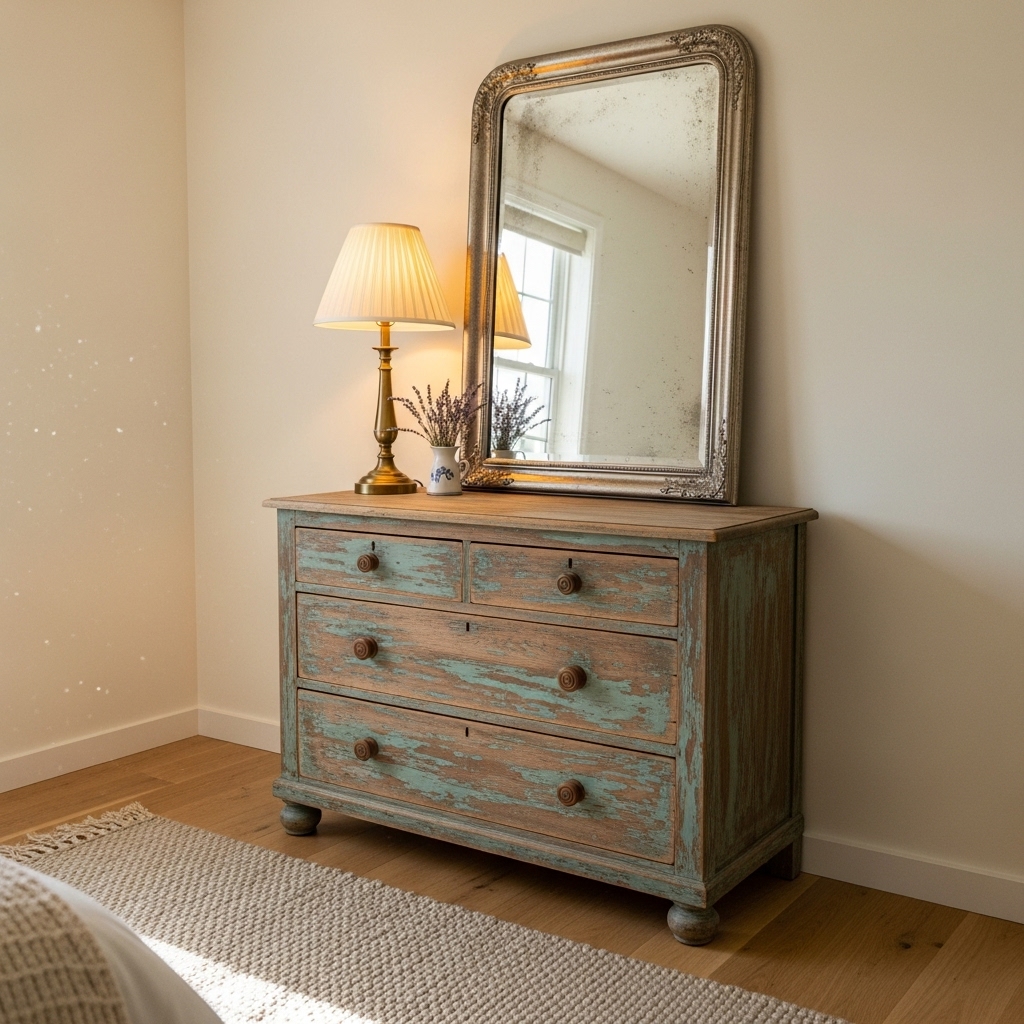 Antique frames, weathered trunks, or a distressed dresser can add instant character. Mixing old and new elements gives your bedroom a timeless, romantic allure.
