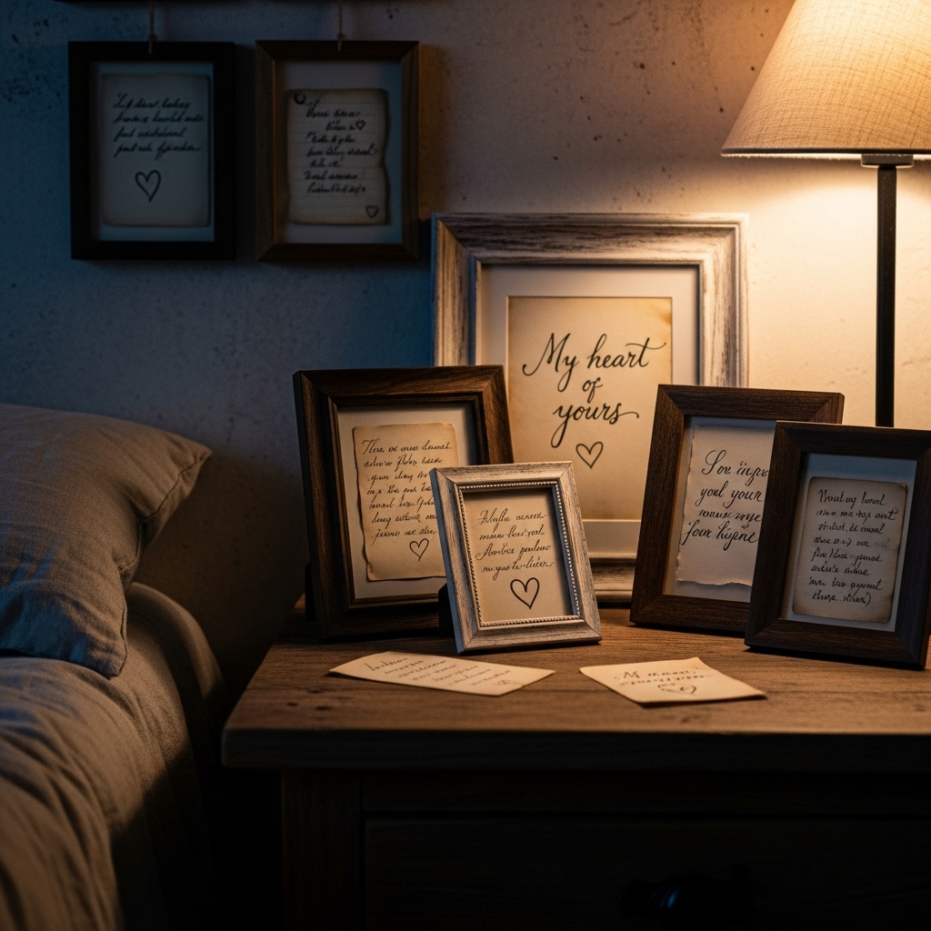 Frame handwritten notes, favorite quotes, or even ticket stubs from shared experiences. These personal mementos turn your room into a meaningful reflection of your relationship.