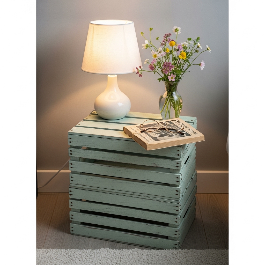 Repurpose a vintage stool, crate, or stack of wooden boxes into a charming bedside table. Style it with a vase of flowers, candles, and your favorite book.