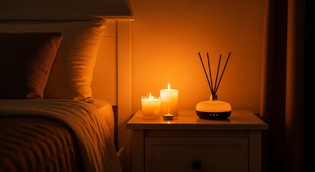 Soft scents such as lavender or vanilla promote calm. Flameless candles provide safe ambiance if you prefer less maintenance.