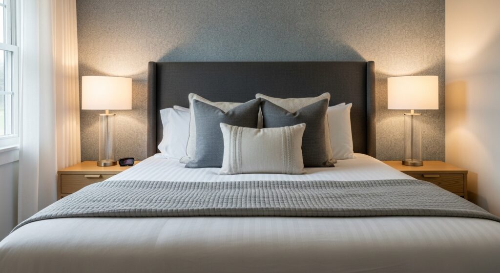 Too many pillows feel cluttered. Choose two or three accent pillows that complement your palette while keeping the space usable.