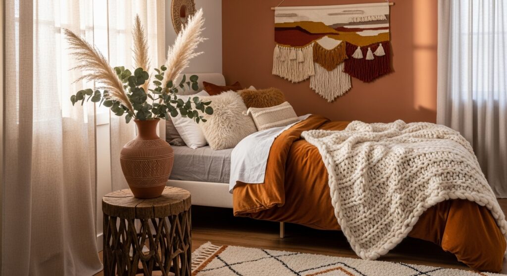 A unique decor item such as a handmade vase, woven wall hanging, or artistic lamp gives your room character.