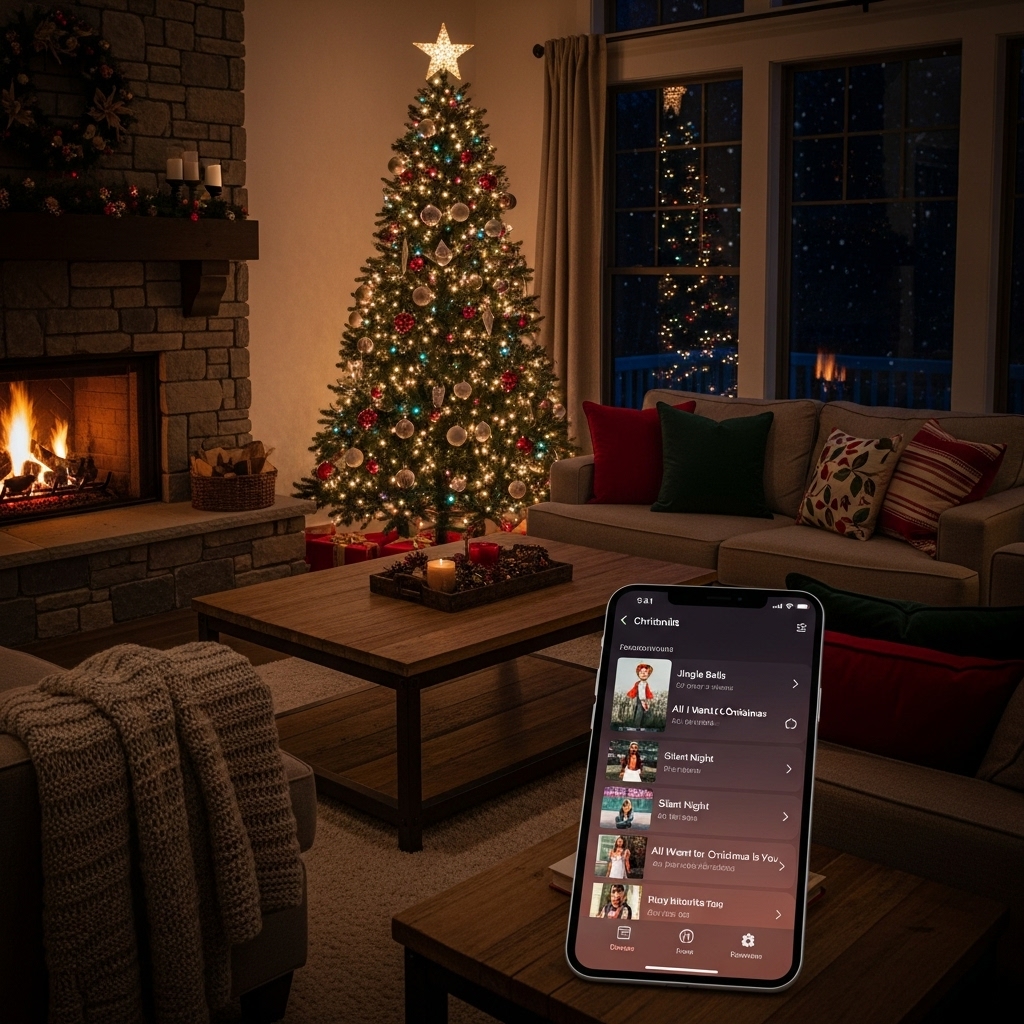 Skip the subscription fees and use free streaming playlists on Spotify or YouTube to fill your home with Christmas cheer Christmas Budget Friendly Ideas.