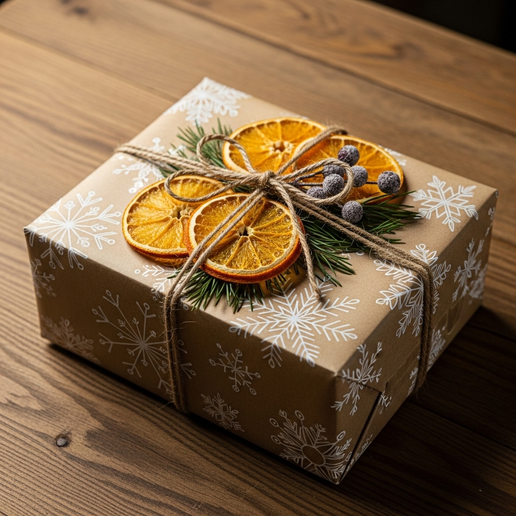 Use brown craft paper, old newspaper, or leftover wallpaper. Decorate with stamps, dried orange slices, or hand-drawn designs. It’s charming and eco-friendly!