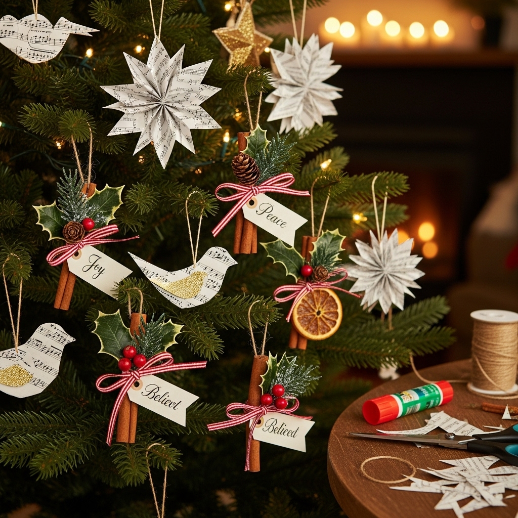 Use paper, fabric scraps, cinnamon sticks, or salt dough to create ornaments. Involve your kids or friends — it’s fun, meaningful, and affordable.