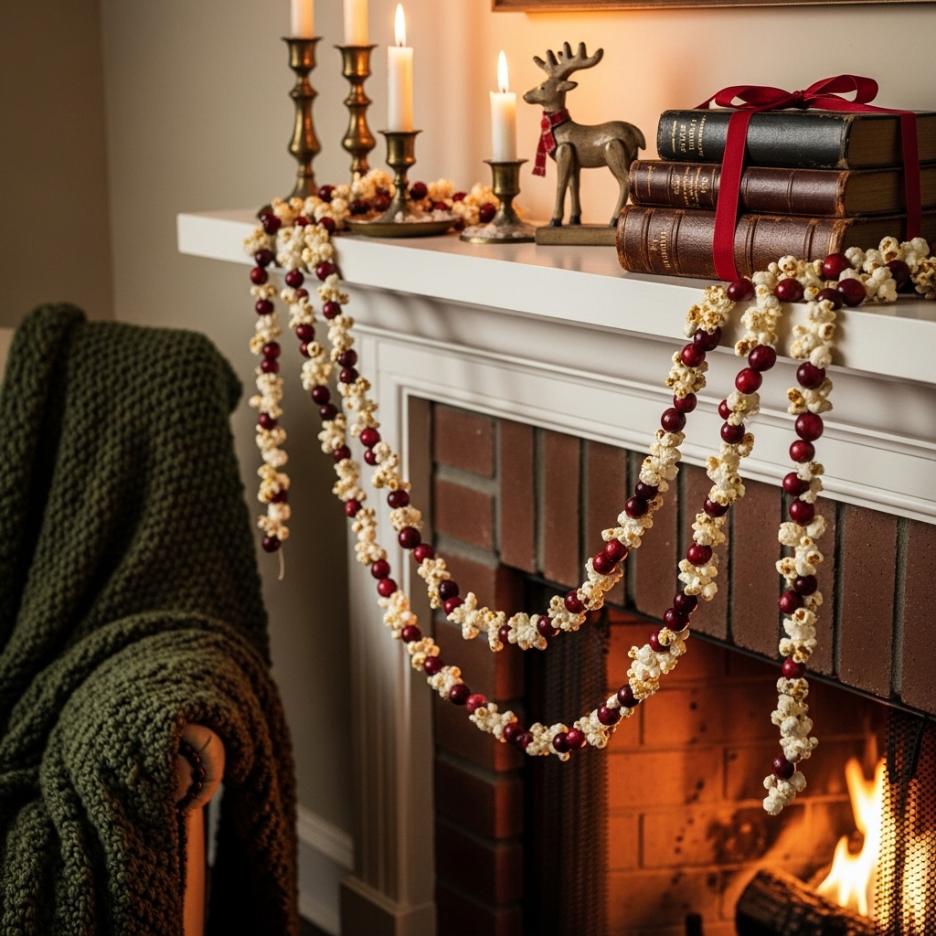 String popcorn, cranberries, or paper cutouts for nostalgic and inexpensive garlands that look amazing on trees or mantels.